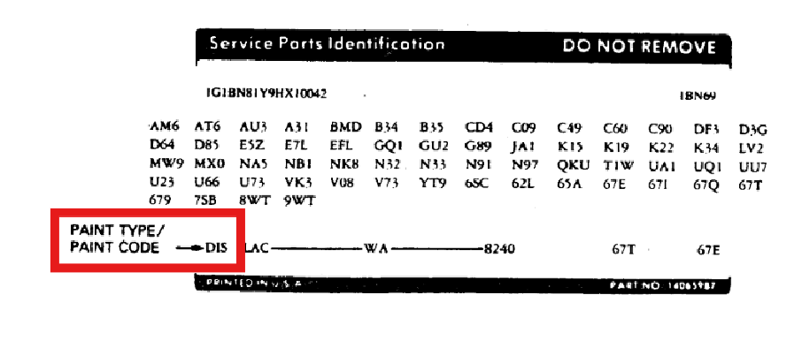 The paint code for your truck can be found on the service parts identification sticker in the glove box. We've attached an image depicting where the paint code is located on the sticker. If you're unsure of your paint code, simply type your vehicle's color.