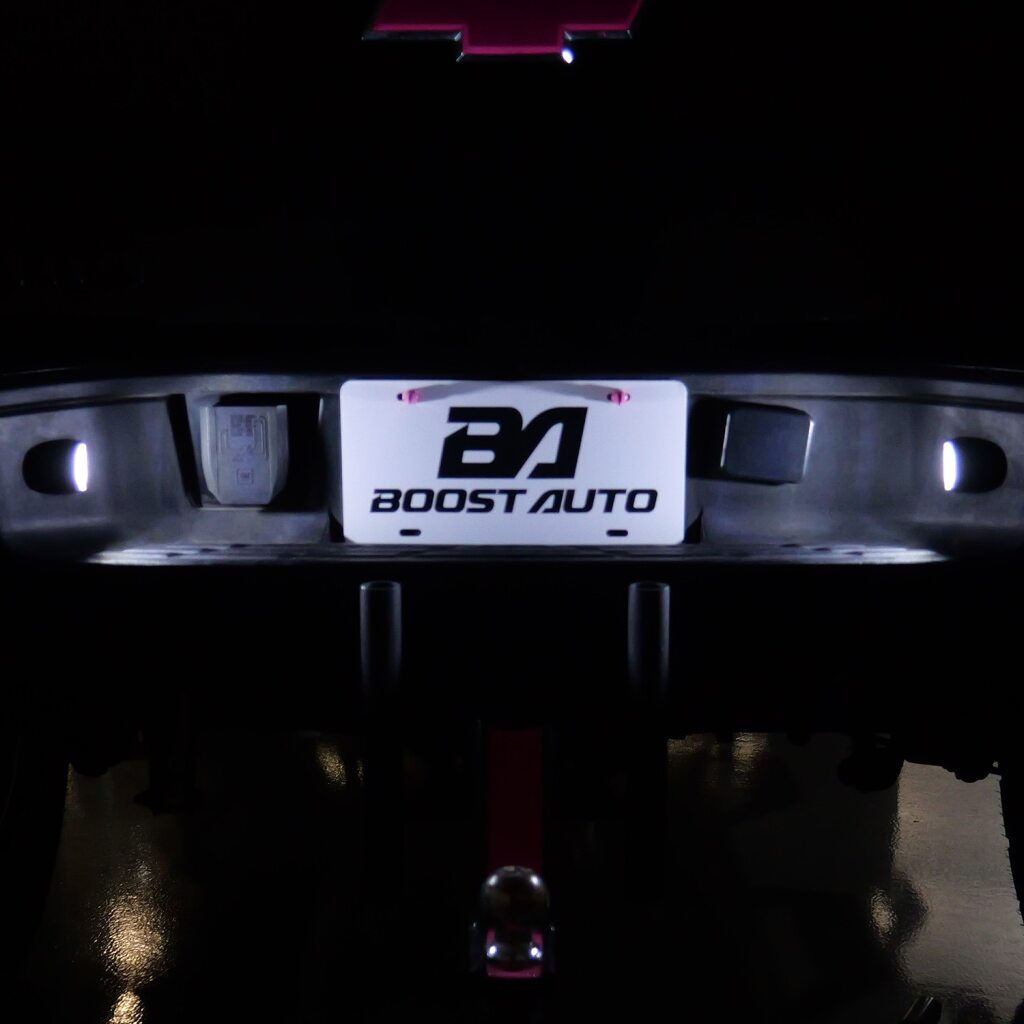 Upgrade the look of your truck with Boost Auto’s LED License Plate Light Kit for 2007.5-2014 Chevy Silverado and GMC Sierra 1500, 2500, and 3500 trucks. Designed for a perfect factory fit, this kit replaces the dull, yellow factory bulbs with crisp, bright white LEDs that are 15 times brighter for a modern look and improved rear visibility.