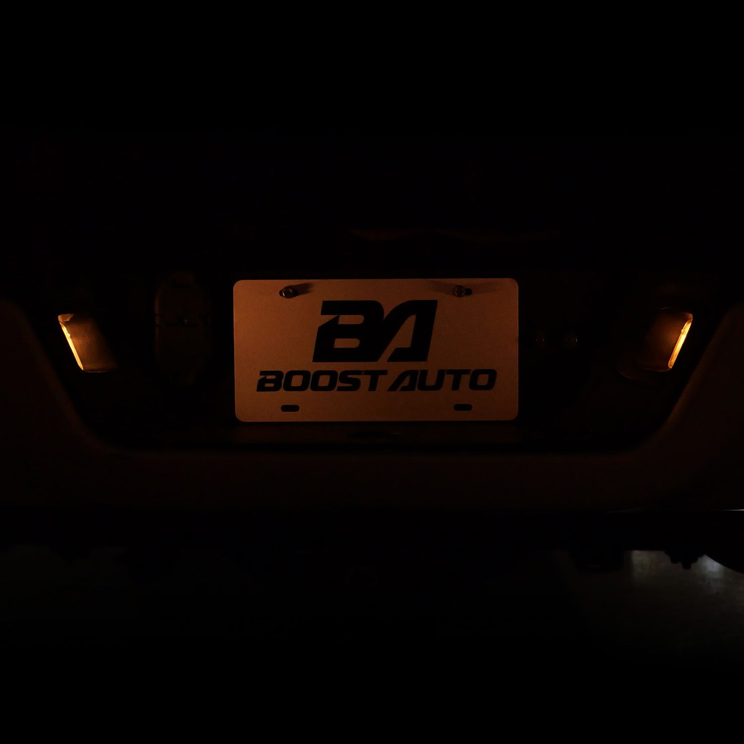 Upgrade the look of your truck with Boost Auto’s LED License Plate Light Kit for 2010-2018 4th Gen Ram 2500/3500 trucks. Designed for a perfect factory fit, this kit replaces the dull, yellow factory bulbs with crisp, bright white LEDs that are 15 times brighter for a modern look and improved rear visibility.