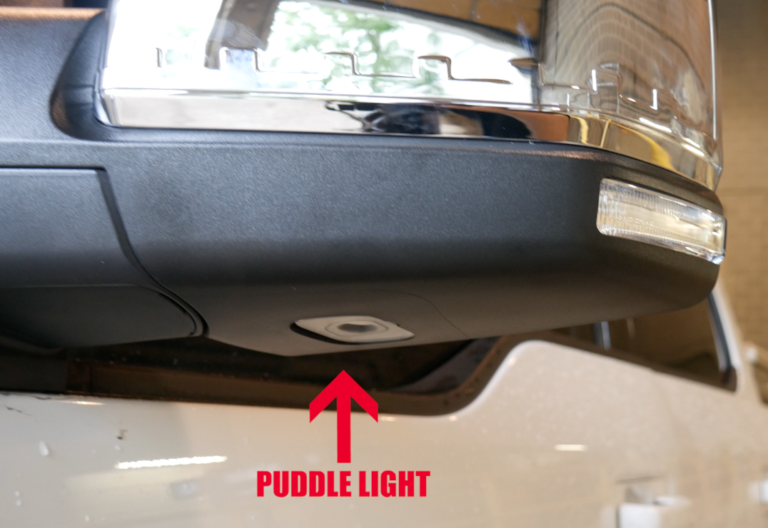 We recommend checking underneath the mirrors on your truck to verify this, If you have puddle lights you will be able to spot them as seen in the graphic below.