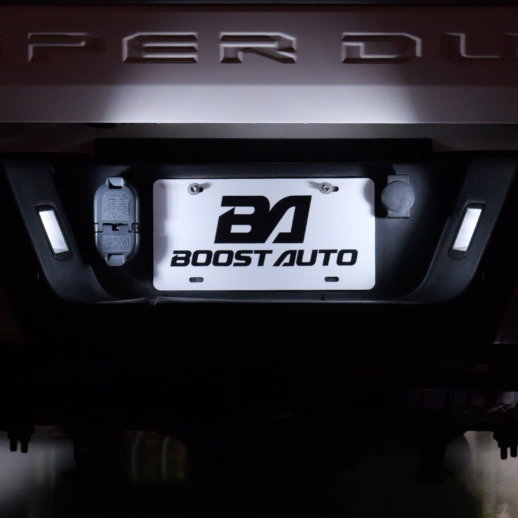 Upgrade the look of your truck with Boost Auto’s LED License Plate Light Kit for the 2023+ Ford Super Duty. Designed for a perfect factory fit, this kit replaces the dull, yellow factory bulbs with crisp, bright white LEDs that are 15 times brighter for a modern look and improved rear visibility.