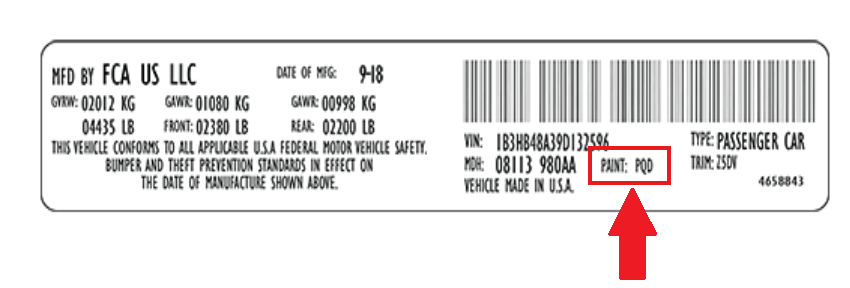 The paint code for your truck can be found on the vehicle information sticker on the driver-side door jamb. We've attached an image depicting where the paint code is located on the sticker. The paint code will be a 3-digit code listed after “paint”. If you're unsure of your paint code, simply type your vehicle's color.
