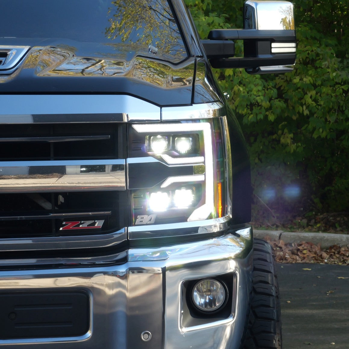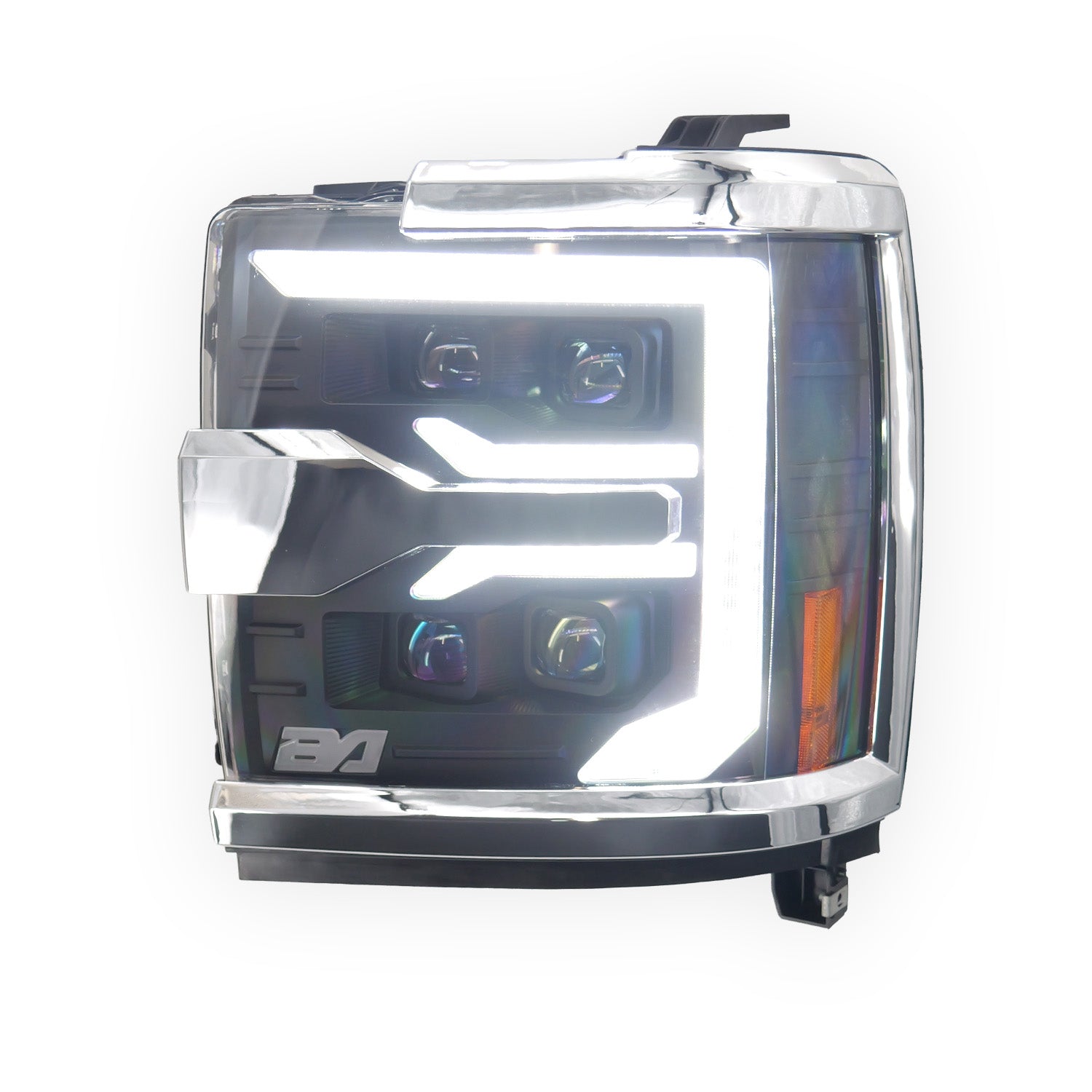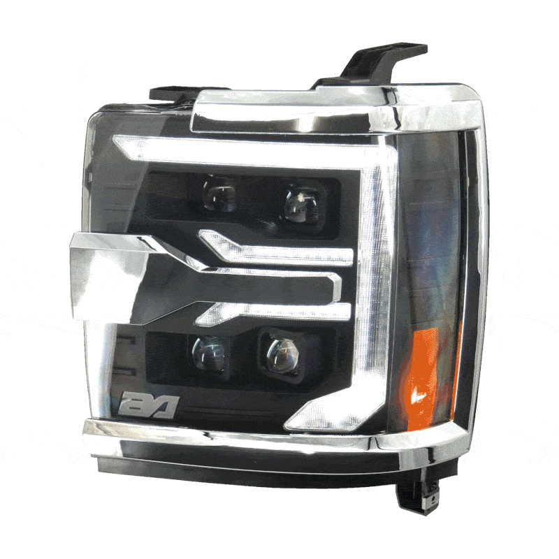 Scroll down to see images, specs, and everything that makes Boost Auto’s VX4 LED Projector Headlights the ultimate upgrade for your Silverado HD, including Gas and L5P Duramax models.