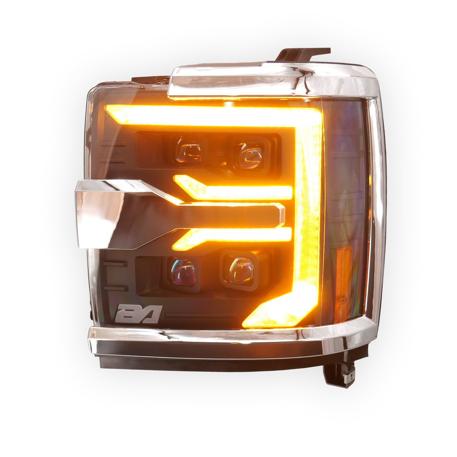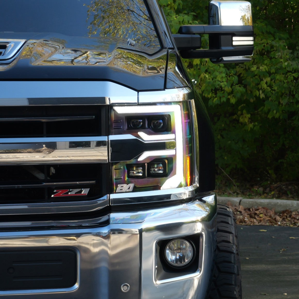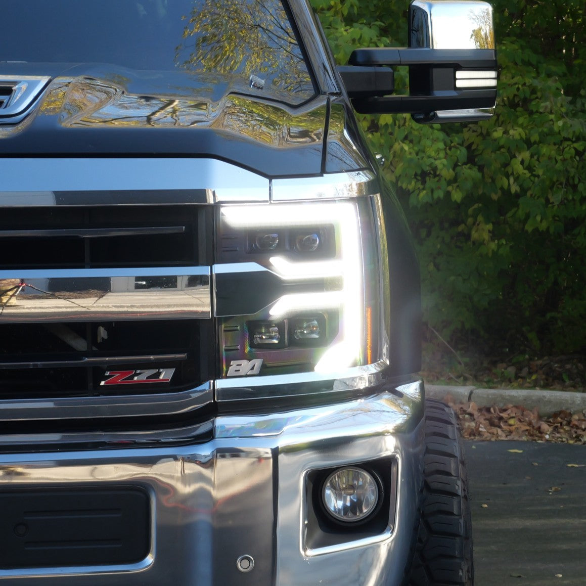 Scroll down to see images, specs, and everything that makes Boost Auto’s VX4 LED Projector Headlights the ultimate upgrade for your Silverado HD, including Gas and L5P Duramax models.